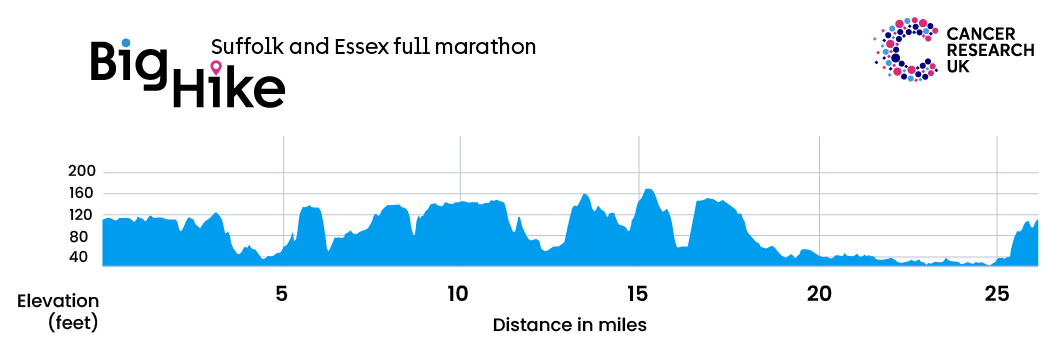 This full marathon hike takes you along the Essex Way, across rolling meadows, through small woods and picturesque villages. You then join the St Edmunds Way and the Stour Valley Path hugging the winding River Stour for miles. The route captures the pastoral beauty and tranquil charm immortalised in Constable's celebrated paintings, before crossing the finish line at the showground. The hike will follow a circular, clockwise route climbing ≈ 1,000 ft. It has three support points where you'll find hot drinks, a selection of snacks and fruit, water, medics, ample bench seating, music and toilets.